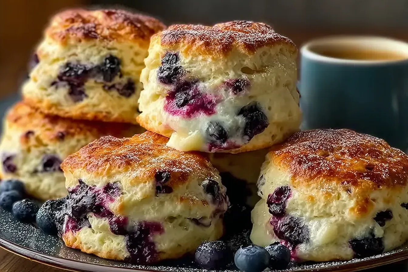 Deliciously fluffy Blueberry Biscuits bursting with fresh blueberries, perfect for breakfast or a sweet treat.