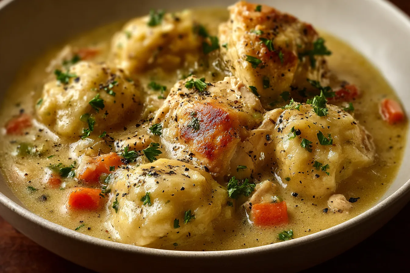 This classic Chicken and Dumplings recipe combines tender chicken, flavorful broth, and fluffy dumplings for a comforting meal.