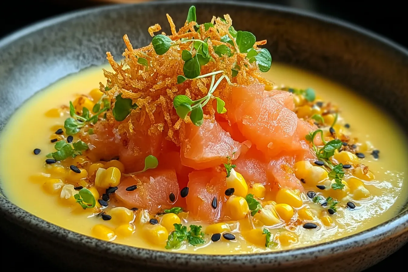 Elevate your Corn Gazpacho with Salmon & Crispy Rice – Summer’s Best Bite by incorporating a delightful crunch. Crispy rice adds a lovely texture that contrasts beautifully with the creamy corn base. To prepare crispy rice, simply fry cooked rice in a little oil until golden brown and really crispy. This technique not only enhances the dish but also introduces a satisfying bite that keeps diners coming back for more.