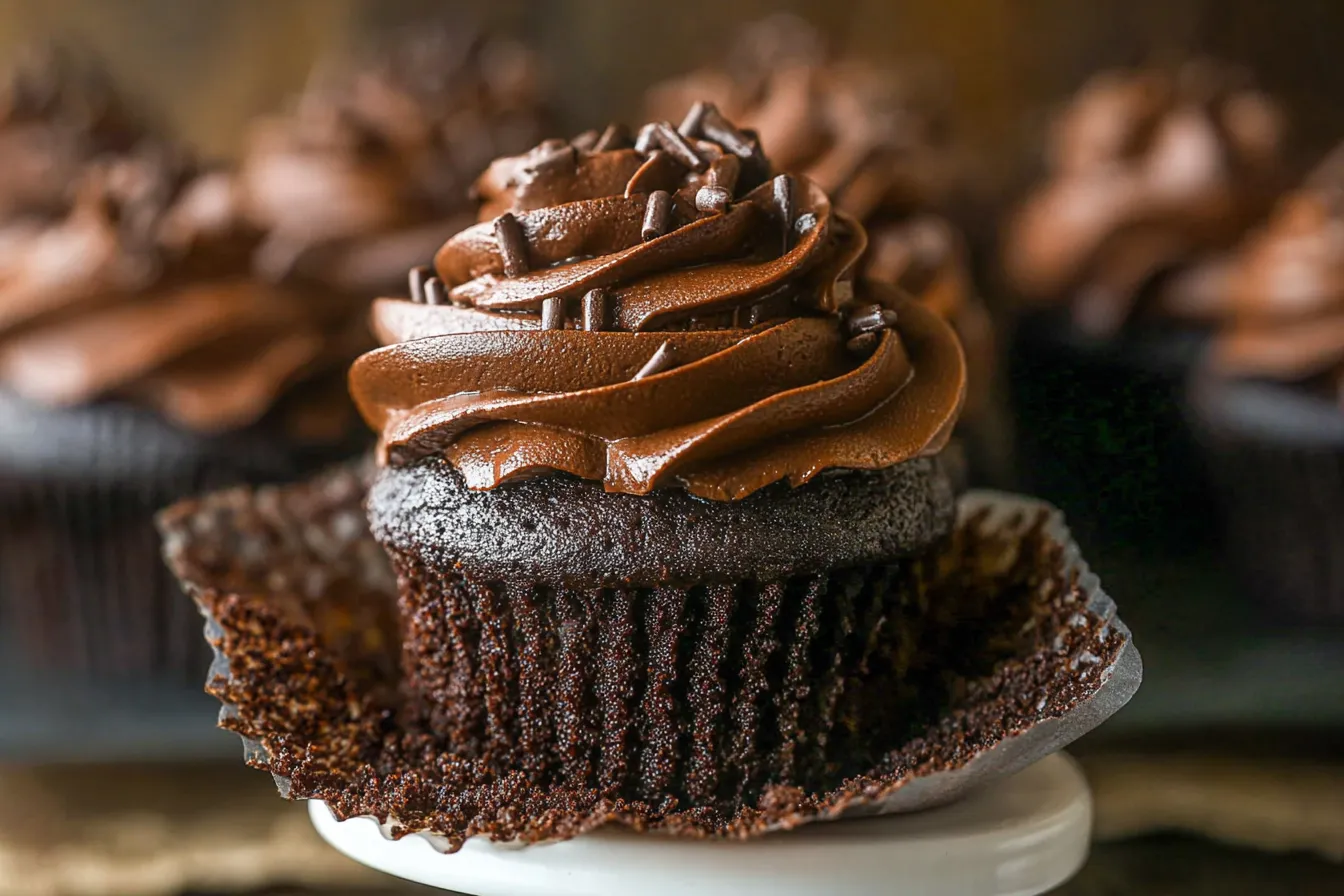 - Frost the cooled cupcakes with the chocolate buttercream.
