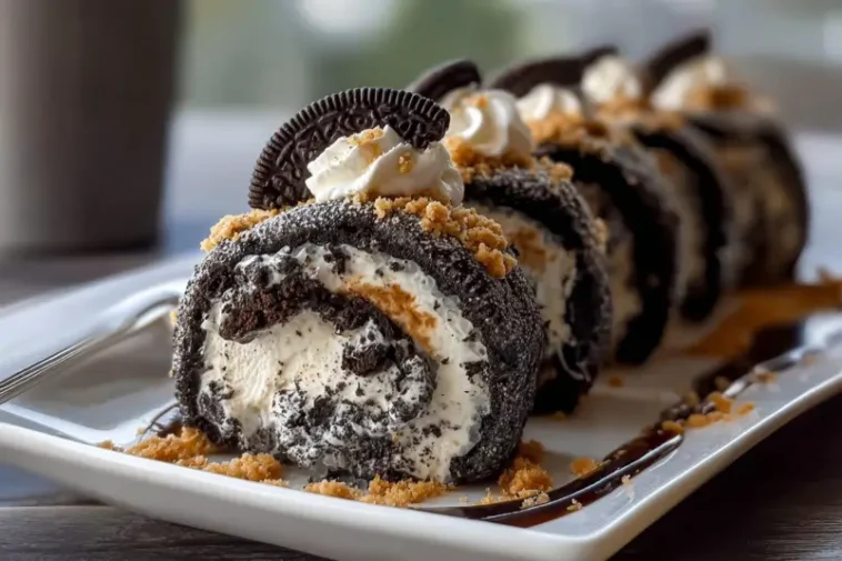Drizzle chocolate or caramel syrup over the sushi rolls and sprinkle with reserved Oreo crumbs. Add sprinkles, shredded coconut, or edible gold dust for a festive touch. Arrange on a serving platter, and your Oreo Sushi Rolls Dessert Fusion is ready to impress!
