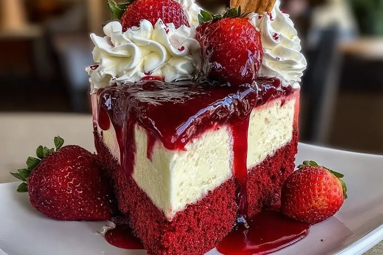 Indulge in the delightful allure of the Red Velvet Strawberry Cheesecake – Creamy & Stunning Dessert Recipe. This decadent treat combines the rich, velvety taste of red velvet cake with the tangy goodness of strawberries and a luscious cheesecake layer. Whether you’re celebrating a special occasion or simply treating yourself, this dessert will impress your guests and satisfy your cravings.