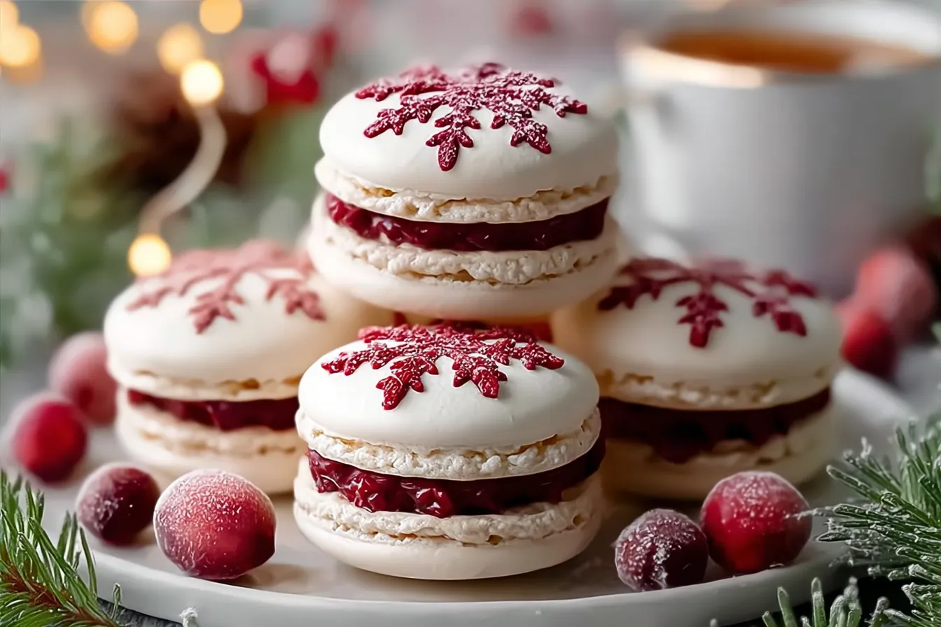 SNOWFLAKE CRANBERRY CHRISTMAS MACARONS: Delight Your Guests!