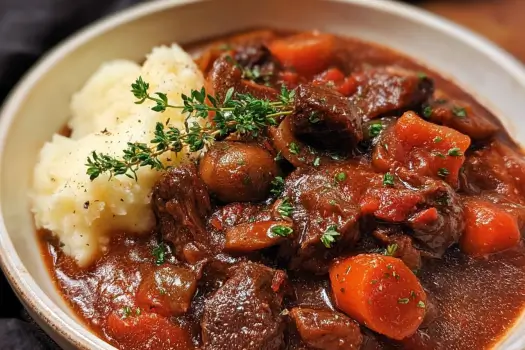 Experience the warmth and elegance of a French classic made simple. This Traditional Slow Cooker Beef Bourguignon combines tender beef, smoky bacon, and hearty vegetables simmered slowly in a rich red wine sauce. Perfect for cozy family dinners or special occasions, it’s a dish that brings timeless comfort to your table with minimal effort.